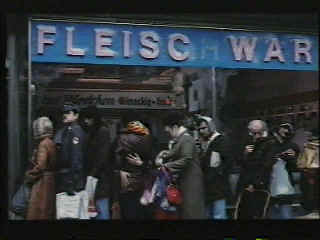 TAKE 3 DIE SCHLANGE von hinten: KNUD KNABE Bildhauer, Ausstellungsmacher, Gestalter u.a. von einer der ersten Grosswohngemein- schaften in der auch ihre Mutter VICKY KNABE wohnte, sie erscheint gleich. Knud hört sich den Witz von MICK VON SCHILLER über Kozmo- nauten an, nun ist der arme Mick auch tot. Wie PETER PEWAS der ehrwürdige Hamburger Regiessur mit seiner fellinihaften Freundin. Sein freundlicher Kommentar nach der Permiere: “Der Regisseur ist ein Teufel”. Vor ihm steht DIEDRICH DIDRIECHSEN genannt Didi, mit einem futuristischen Kopfhörer. Vor ihm die Filmfrau von RAINER KIRBERG, er kommt gleich dazu, das nächste ist ein berühmtes Pärchen ; HANSI BLEY damals SAAL 3 heute Goa liebt sich mit MAGITA von ABWÄRTS durch die Schlang. Vor ihnen steht AHMAD AHMADSANI, der schönste Mann Hamburgs am Anfang der 80er. Sein Vormann in der Schlange vor der Schlachterei, in der die Pianistin CHRISTINE KAUFMANN (Laura) arbeitet, ist der langjährige Verantwortlicher Redakteur des INFORMATIONSDIENSTES ZUR VERBREITUNG UNTERBLIEBENER NACHRICHTEN und späterer Ziehvater und Mindmaster der TECHNO-SCENE, INDULIS BILZENS (Arbeitermilizist). Als nächster tritt RENE DURAND dazu, Hero des Hamburger Kiezs als argentinischer General Astor Durando. Die Affaire von Laura und Durando nimmt ihren verhängnissvollen Anfang.