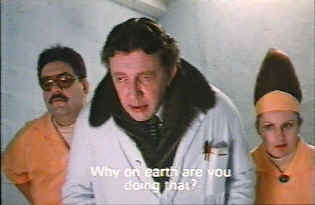 und ANTHONY INGRASSIA (Pieck) nicht in Ruhe gelassen.Die liebenswürdigsten Menschen am set in so nasty Rollen; Montezuma kam von einer schweren Krebsoperation um ihr vorletzten Filmauftritt zu geben, von Ingrassia wussten nur Wenige dass er bevor in West-Berlin mit seiner monströsen Gestalt und Gedichten im Nichts gelandet war, führte er in New York die Regie bei ANDY WARHOLs Theaterstücken in den 60ern. Nun ist der liebe Tony tot. Es folgt die Entdeckung des SEROTONIN-Tests, einer noch heute revolutionären Methode zur Diagnose von Selbstmordgefahr. DIETER “THOMAS” HECK (Dr.Frisch) tritt auf, ein sagenhafter Schauspieler und ein prima Kollege.